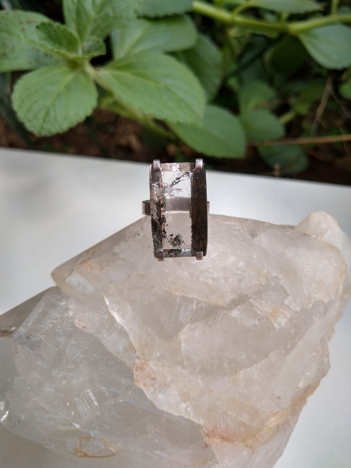 Anel em prata 950 fabricado a mão e pedra natural de Lodolita