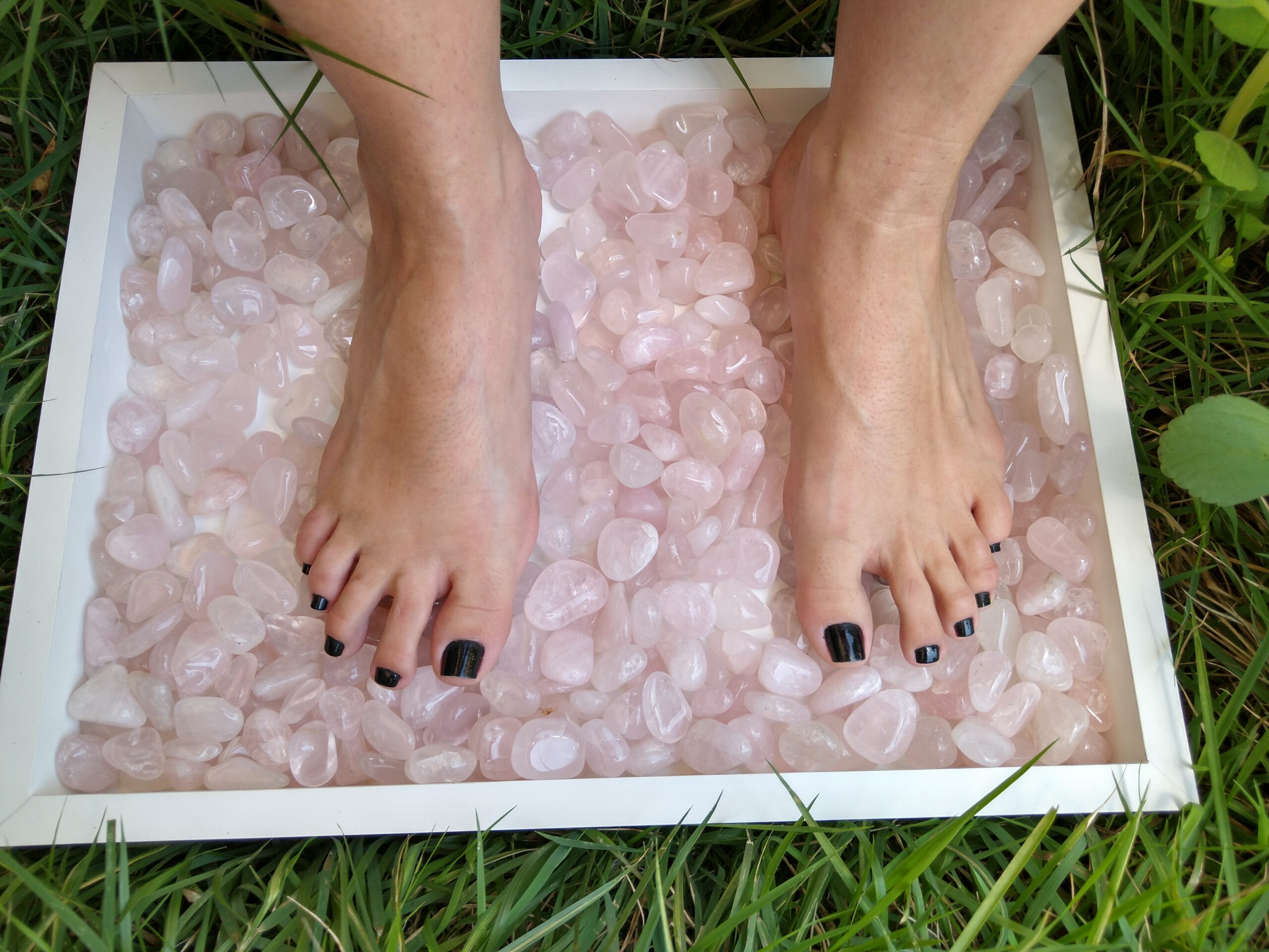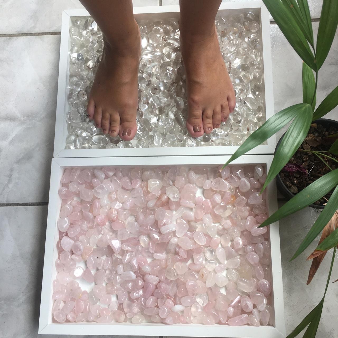 O Quartzo Rosa é a pedra do amor incondicional e da paz infinita, em contato com os pés ou qualquer área de corpo, ele nos ensina a verdadeira essência  do amor, inspira uma profunda cura interior e amor próprio , é calmante reconfortante, repele suavemente a energia negativa e a substitui por vibrações de amor, fortalece o sistema circulatório  além de eliminar impurezas dos fluidos corporais.