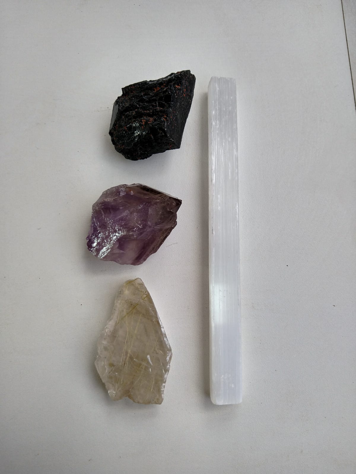 Quartzo Rutilado: Facilita o contato com uma orientação espiritual mais elevada, esse cristal filtra a energia negativa do “cliente” ao Mesmo tempo que protege seu campo magnético, é conhecida como a pedra que ” ilumina a alma”, mantendo assim sua vibração sempre elevada.