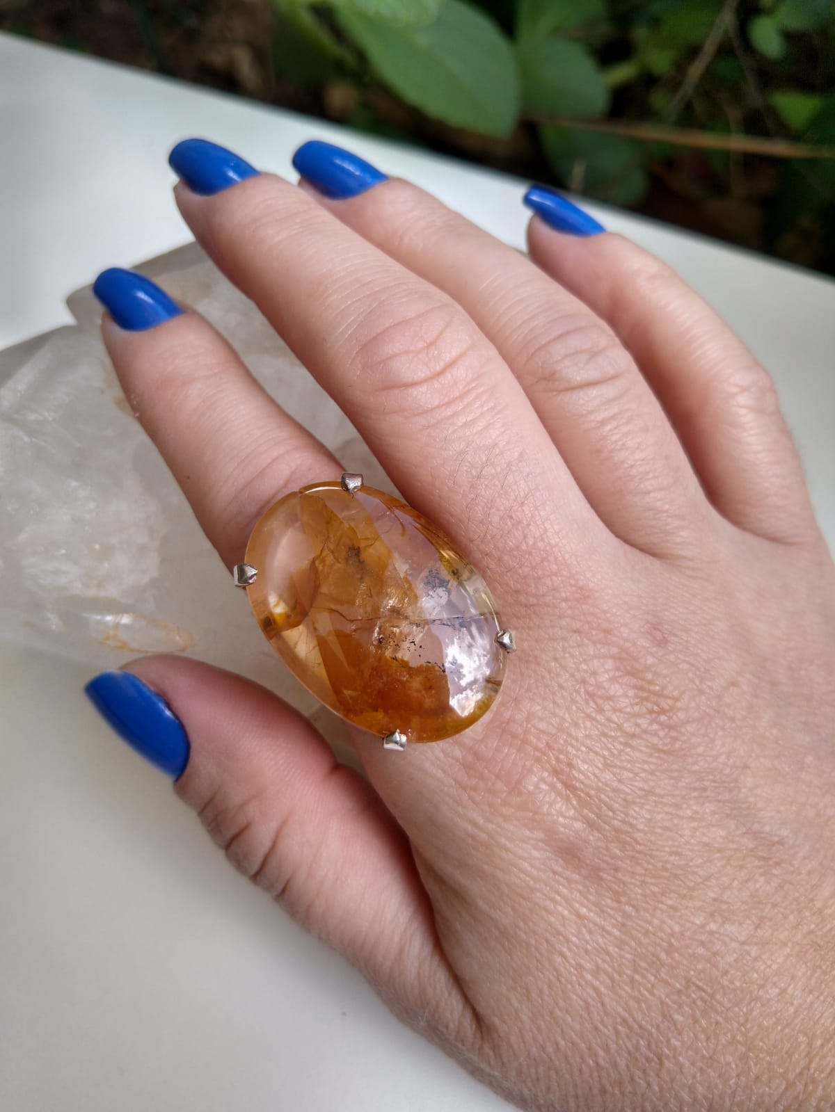 Anel de Lodolita (Quartzo com inclusão) em Prata